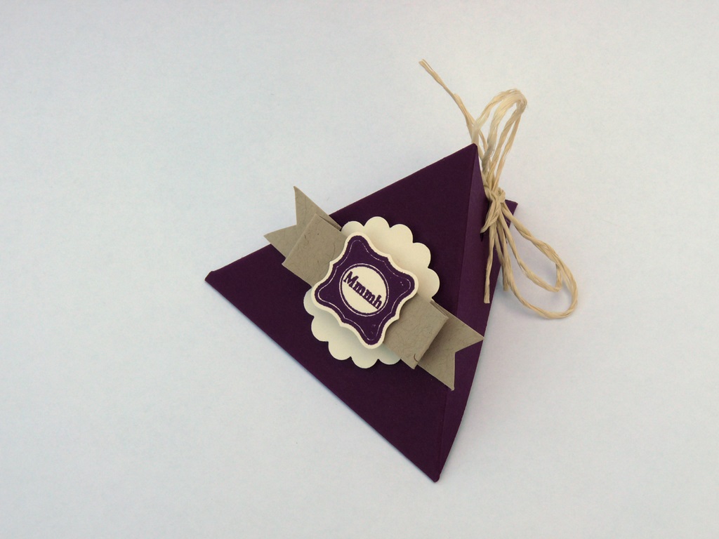 Eher nebenbei ist eine kleine Dreieckschachtel von meinem Basteltisch gehüpft – natürlich in Brombeermousse!