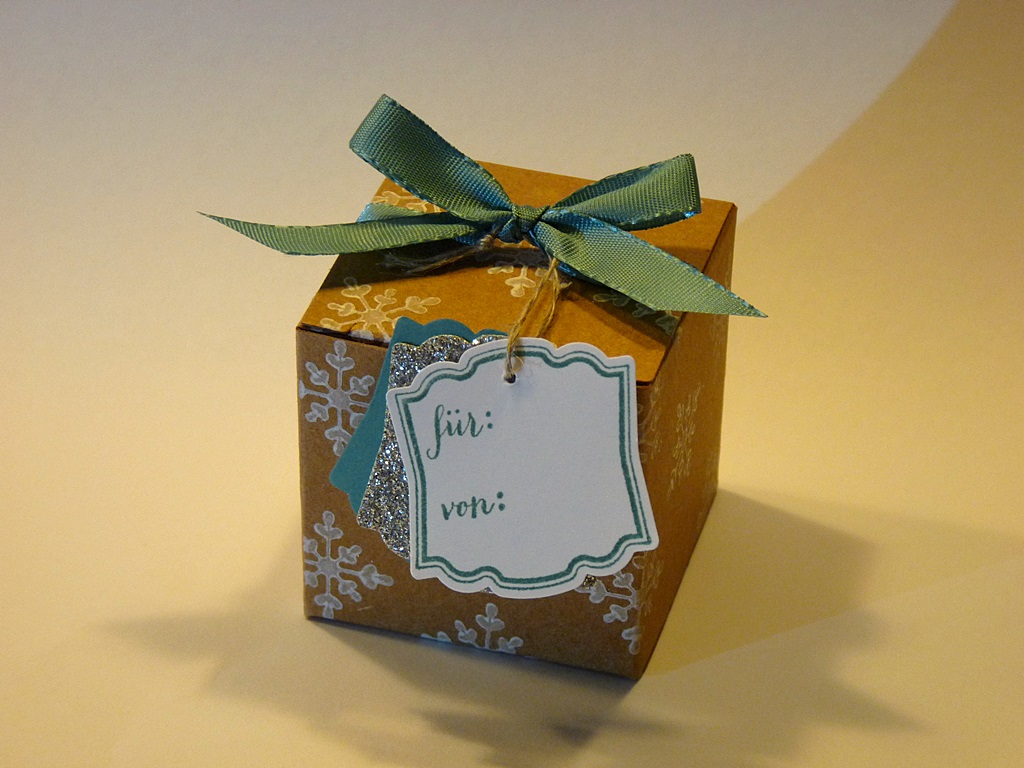 Bis jetzt habe ich zwar noch keine Gelüste nach Lebkuchen und Plätzchen, aber weihnachtliche Basteleien dürfen es gerne sein! Die Mini-Geschenkschachteln aus dem Herbst-/Winterkatalog sind zum Beispiel eine prima Grundlage, und es passt auch schön was rein: