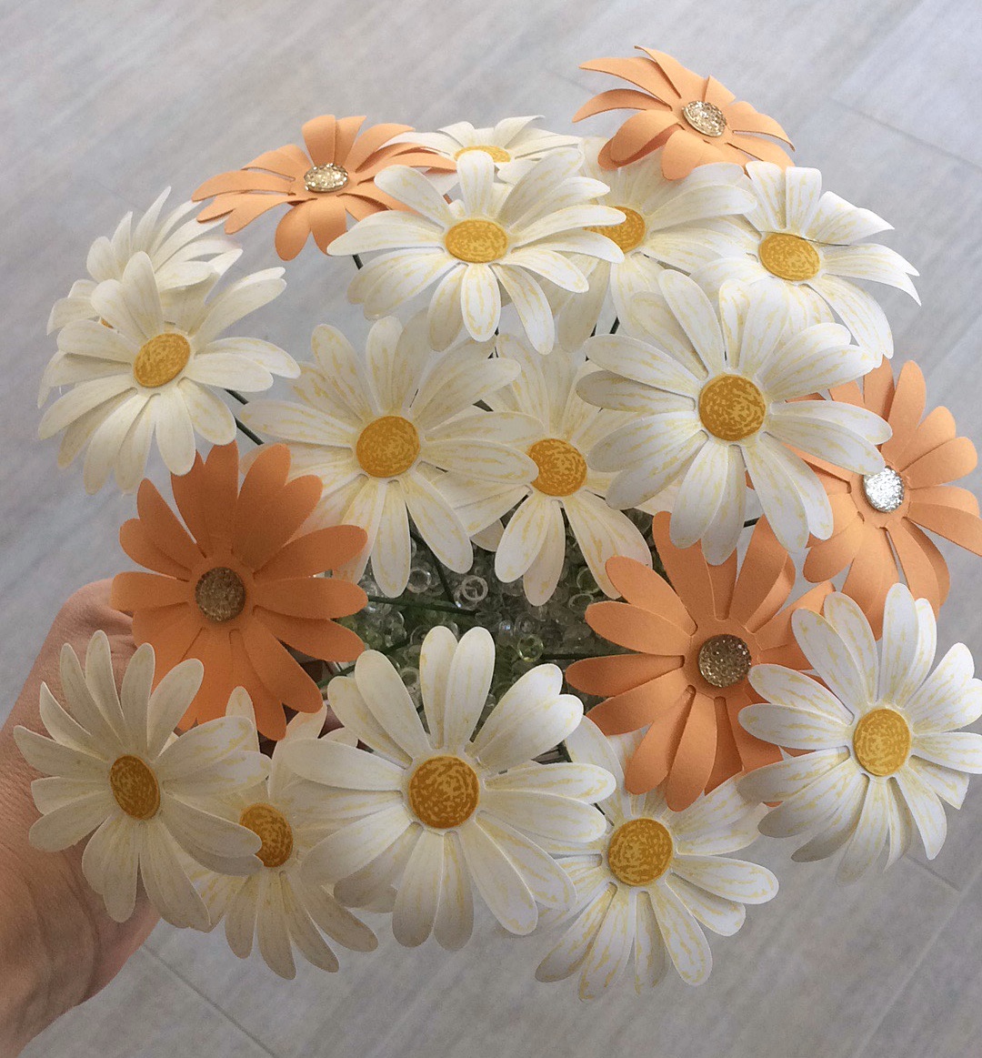 Ich hab mir da mal ein Blumensträußchen für’s Büro gemacht. Kein Gießen nötig, verwelkt nicht, und dank Stanze und passendem Stempelset soooo schnell und einfach gemacht! Am 28.7. gebe ich wieder eine Sammelbestellung auf, schnapp Dir doch das Produktpaket und bau Dir Deinen eigenen Strauß!